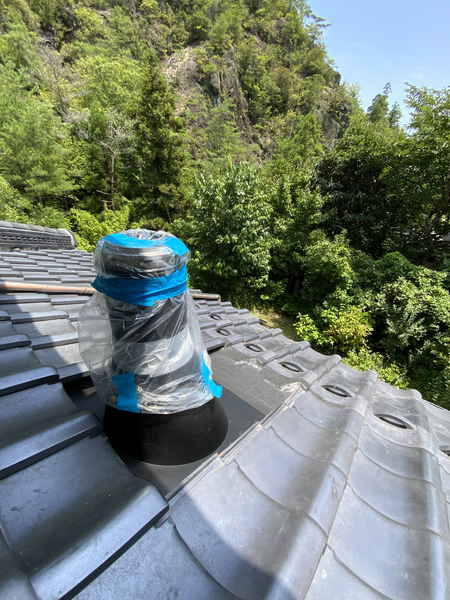 室内側と瓦屋根との取り合いの煙突仕込みを終えましたので、本日は