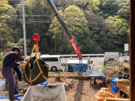 コンクリート打設も一輪車での運搬ではなくポンプ車を手配して