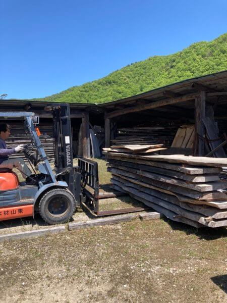 現場を大工さんに任せて、わたしはお隣、猪名川町の東山材木店へ。