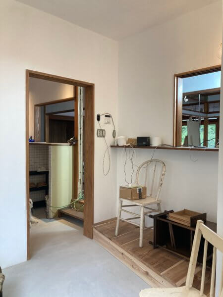 厨房横のバックヤードとお会計コーナーも出来上がっています。