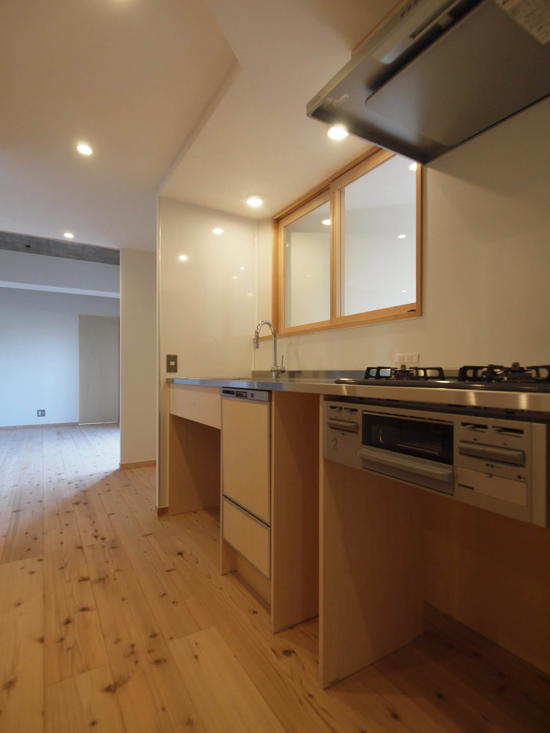 ●細かく区切られたいた3LDKの間取りを専有面積いっぱいに 大きく使って暮らせるように住まいのプランを進めました。 内窓を設ける事で開口部付近の温熱環境を改善するとともに、 窓と造作ベンチを絡める事で室内にいながらも屋外を感じられる ように配慮しました。居場所をちりばめる事で実際の面積以上の 空間に感じる事が出来ます。