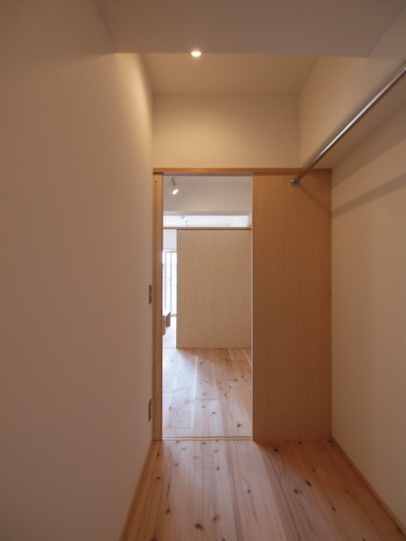 建具を開ければ南北の空間が繋がり、ウォークインクローゼット内に風が通り抜けていきます。