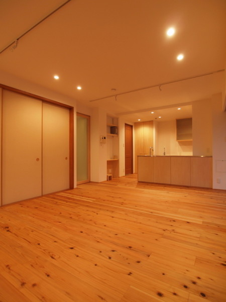 部分リノベーションで廊下及びLDKの床を既存の合板フローリングから杉の無垢フローリングへ張替えました。