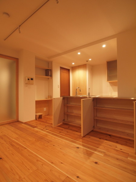 【杉床と広々とした造作キッチンのある部分リフォーム(兵庫県西宮市)】