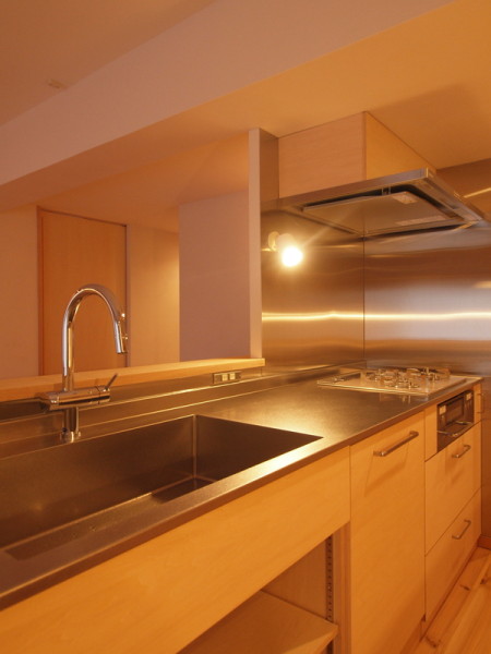 バイブレーション仕上げが施されたステンレス天板はマットで落ち着いた印象となりました。