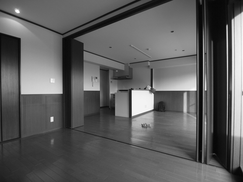 リノベーション前のリビングからダイニング・キッチン方向を見ています。