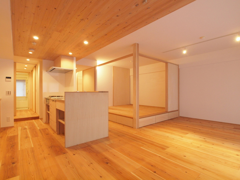 土間スペースと小上がり寝室・床下収納のある木の住まい(大阪府吹田市)