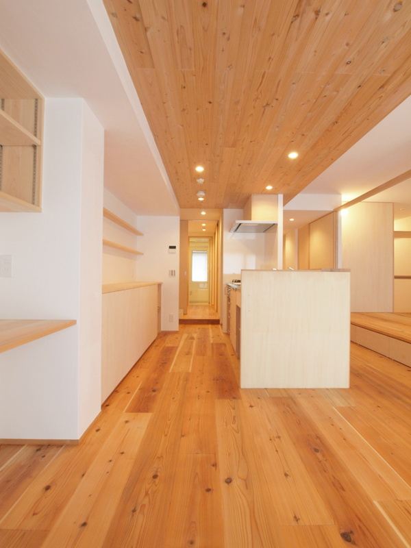 土間スペースと小上がり寝室・床下収納のある木の住まい(大阪府吹田市)