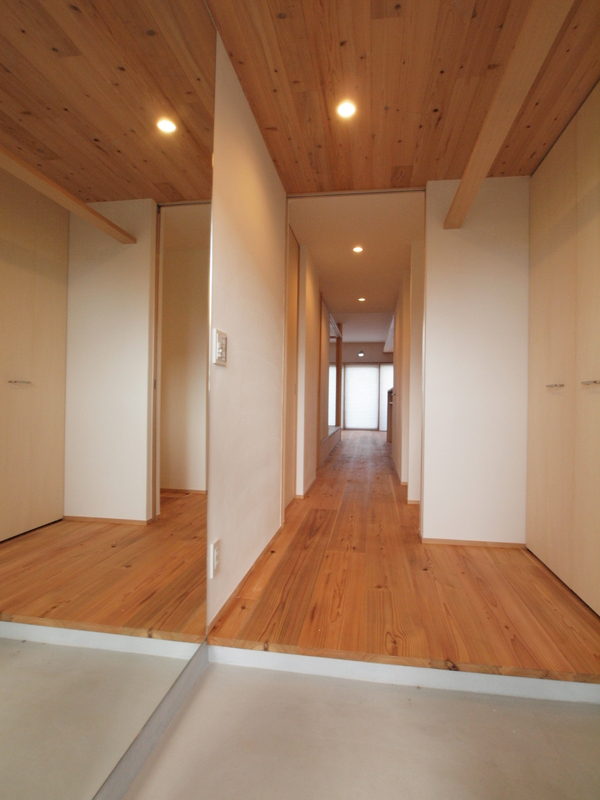 玄関と廊下と仕切る建具は壁の中に収納出来る”引込み戸”の設計としています。